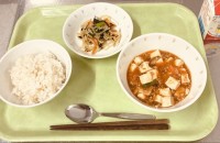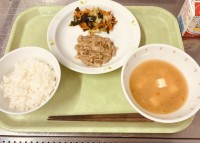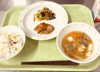 今日は、かつおと大豆のみそがらめ、梅のり和え、具だくさん味噌汁、ご飯、牛乳です。...