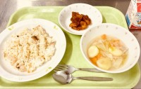 今日は、さつまいもご飯、鶏肉の香味焼き、野菜のからし和え、豚汁、牛乳です。昨日は...