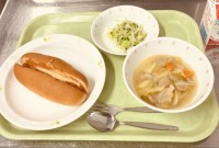 今日は、ビーンズチーズドッグ、カントリーサラダ、ポトフ、牛乳です。ホットドッグは...