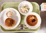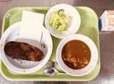 今日は、ココア揚げパン、ハンガリアンシチュー、グリーンサラダ、牛乳です。 ハンガ...