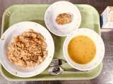 今日は、ツナピラフ、キョフテ(トルコ風肉団子)レンズ豆のスープ、牛乳です。 トル...