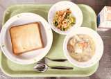 今日は、バニラトースト、コーンシチュー、ベーコンと野菜のソテー、牛乳です。 バニ...