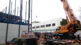 第1仮校舎の外枠がどんどんと伸びてきています。プール跡地の第2仮校舎は、基礎部分...