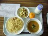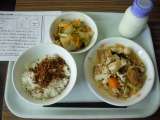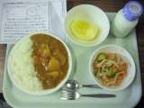 今日は、カレーライス、牛乳、こんにゃくサラダ、りんごです。 メモは、噛むことにつ...