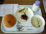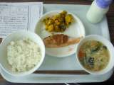 今日は、スライス丸パン、牛乳、ひじきとコーンのコロッケ、ほうれん草のクリームスー...