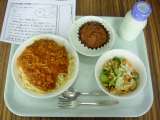 今日は、ヘルシーミートソース、牛乳、フレンチサラダ、おからマフィンです。 みなさ...