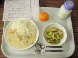 今日は、クリームライス、牛乳、ハムと大根のサラダ、みかんです。 みなさん、今年度...