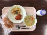 今日は、つけみそラーメン、わかさぎのから揚げ、白菜の中華サラダ、牛乳です。 ねぎ...