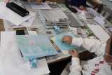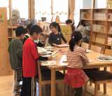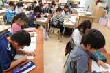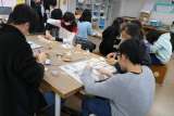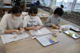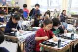 6年生の図工授業の様子です。高麗石で印を作り、それを入れる印箱も手作りします。板...