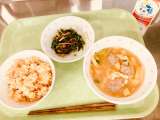 今日は、かやくごはん、肉団子汁、野菜のごまあえ、牛乳です。 「きようのこんだて」...