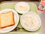 今日は、ガーリックトースト、白菜のクリーム煮、りんご、牛乳です。 ニンニクは英語...