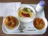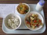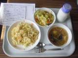 今日は、エビピラフ、牛乳、フレンチサラダ、肉団子入り春雨スープです。 今日は、給...