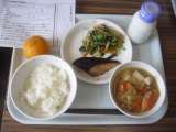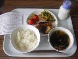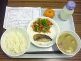 今日は、ごはん、牛乳、ほっけの一夜干し、菜花のからしじょうゆかけ、さつま汁、みか...