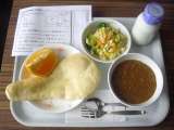 今日は、ナン、キーマカレー、冬野菜のサラダ、デコポンです。 今日は、給食委員会に...