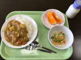 やったね! 今日はカレーライスです。約1070食のカレーライスのために、玉ねぎ8...