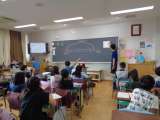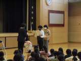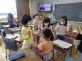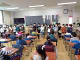 5・6年生は体育館に集まりました。 音楽の島田先生、 支援員の浅野先生に 向けて...