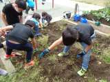2年生です。野菜を育てるために畑の土を整備しました。 雑草を抜き、土をスコップ...