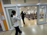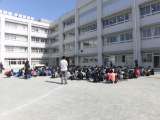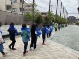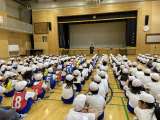 靴箱が混み合わないないように、放送で順番に案内しました。子供たちは、落ち着いて歩...