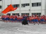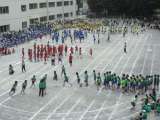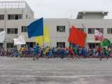気持ちよい青空のもと、校庭に黄色、青、赤、緑組の4色が集合し、 スポーツフェスタ...