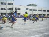 全学年による大玉送りです。大玉を力を合わせて送ります。転がって落ちてしまっても先...