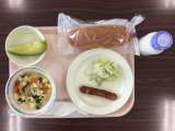 今日は、ホットドッグ、イタリアンスープ、メロン、牛乳です。 ホットドッグは、切れ...