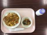 今日は、カレーライスです。福神漬け、大根とひじきのサラダ、牛乳が付いています。 ...