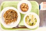 今日は、ソース焼きそば、豆腐と玉子のスープ、キャラメルポテト、牛乳です。 お祭り...