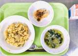 今日は、おまめチャーハン、ジャンボぎょうざ、ねぎとわかめのスープ、牛乳です。 お...