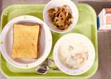 今日は、スイートポテトースト、ホワイトシチュー、れんこんチップサラダ、牛乳です。...
