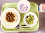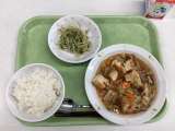 今日の給食は、ごはん、家常豆腐(ジャジャーンどうふ)、ごま塩ナムル、牛乳です。...