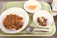 今日は、ハヤシライス、フレンチサラダ、果物(セミノール)、牛乳です。ハヤシライス...