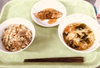 今日は、ご飯、西湖豆腐(しーほーどうふ)、ひじきのナムル、牛乳です。見た目は麻婆...