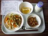 今日は、中華丼、牛乳、大豆とじゃこの甘辛揚げ、美生柑です。 みなさん、今日で6月...