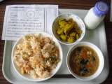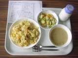 今日は、ピラフ、牛乳、チーズ入りフレンチサラダ、じゃがいものスープです。 めもは...