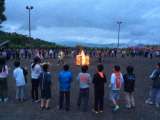 奇跡的に雨が上がり、キャンプファイアーがスタートしました。火を囲んで、5年生の友...