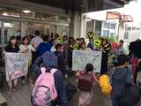 区民会館まで、バスでやって来ました。狂言についてワークショップも交えて学びました...