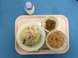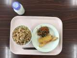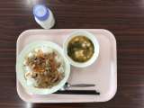 今日はチキンピラフに、卵とトマトのスープという洋風メニューと、ちょっと和風っぽい...