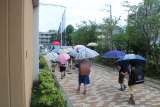 雨がぽつぽつ降ったりやんだりしている中、1年生が下校します。「今日で集団下校はお...