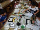 こちらもおなじみ絵手紙教室です。思い思いに夏の花や、野菜を描いていきます。子ど...