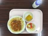 今日はスパゲッティ地中海ソースです。イカやエビなど、魚介が入っているから地中海ソ...