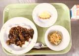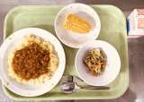 今日は、レンズ豆入りドライカレー、野菜の味噌ドレかけ、とうもろこし、牛乳です。 ...