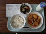 今日は、わかめごはん、牛乳、いろどり煮、パリパリサラダです。 メモは、先週に引き...
