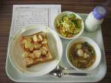 今日は、アップルトースト、牛乳、チーズ入りフレンチサラダ、肉団子入り春雨スープで...