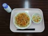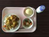 今日は、みんな大好きなカレーライスです。シャキシャキ野菜とりんご、牛乳が付いてい...