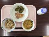 わかめごはん 鶏とじゃがいものうま煮 白菜のおかか和え 牛乳