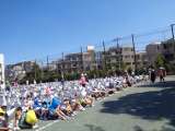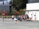 水曜日は、1〜3年生の外ロング朝遊びです。 クラス遊びをして、楽しんでいる クラ...