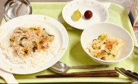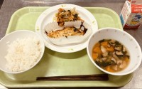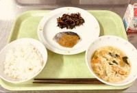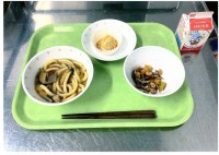 今日は、ご版、魚のあずま煮、磯和え、飛鳥汁、牛乳です。献立表をよく読まずに、甘酢...