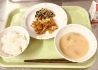 今日は、ご版、チキン南蛮甘酢漬け、切干大根のソース炒め、もずく汁、牛乳です。鶏肉...