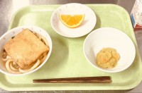 今日は、力うどん、栗きんとん、果物(ネーブル)、牛乳です。今日も「お正月料理」と...