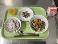 今日は、なめたけご飯、豆腐とお麩の煮物、根菜チップス、牛乳です。なめたけは、そう...